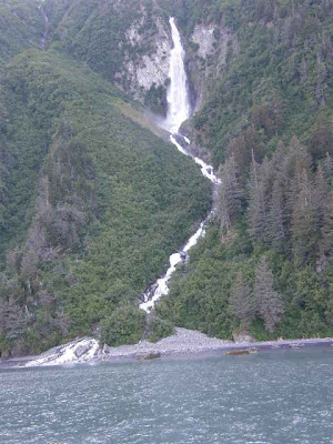 Meares Glacier goes around the corner, up the mountain for miles and attaches to an Ice Field on top of the mountain range also